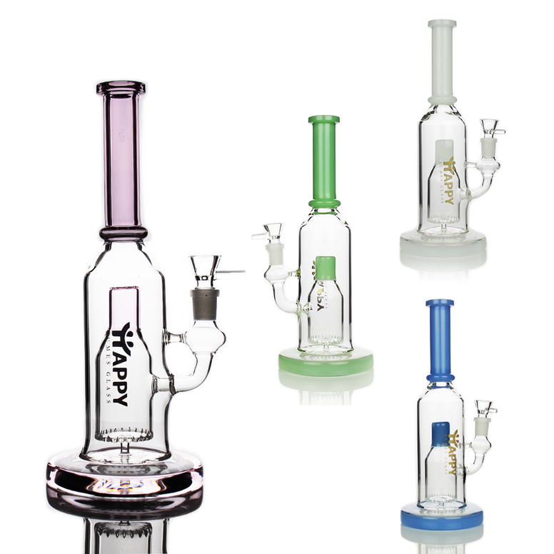 The 11" Happy Fumes Glass with Bottle Design Shower and 14mm Male Bowl is expertly crafted for a smooth and enjoyable smoking experience. The unique bottle design adds style while the 14mm male bowl provides convenient and easy use. Made with high-quality glass for long-lasting durability.