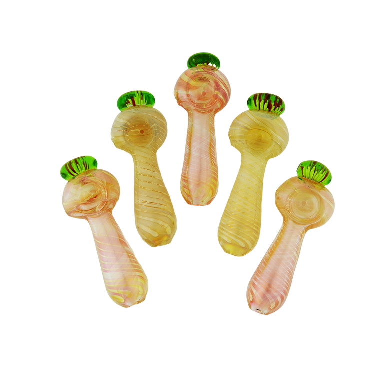 Discover the perfect smoking accessory with our 4.5" Hand Pipe Spoon. Made with intricate swirling art featuring silver fumes and a green locket, this glass pipe is both visually stunning and functional. Enjoy a smooth and flavorful smoking experience while adding a touch of art to your collection.