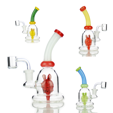 6.5" Dab Rig Rod Color with Cactus Shower with 14mm Male Quartz Banger