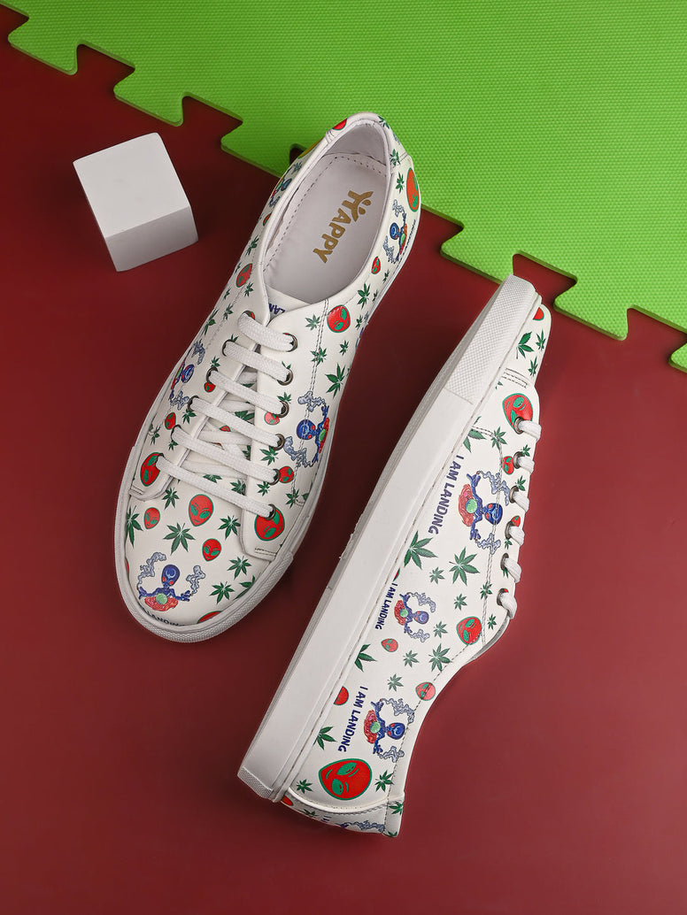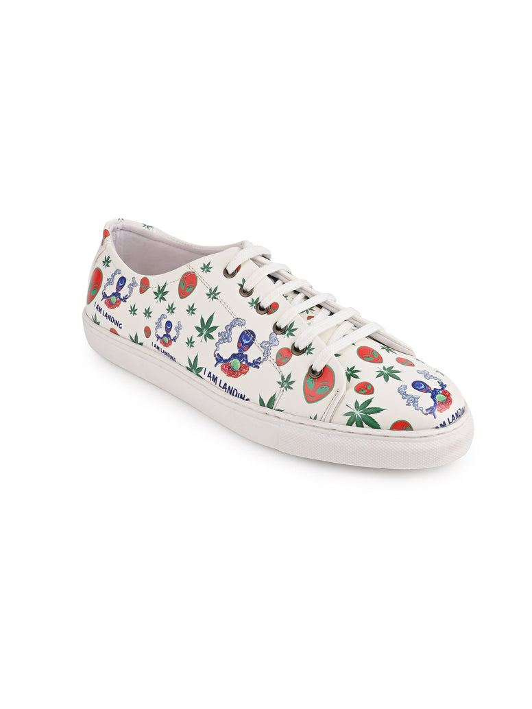 I am Landing Weed Design Snow White Shoe - Printed Synthetic Vegan Leather Size