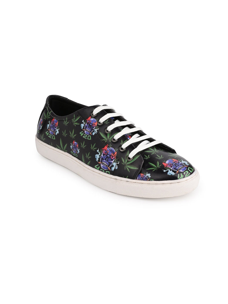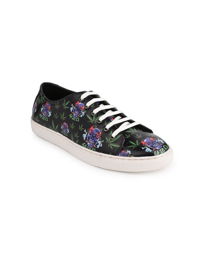 Skull 420 Weed Design Deep Black Shoe - Printed Synthetic Vegan Leather